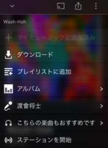 しかも、先ほどの「アーティストページへ移動」のメニュー、
