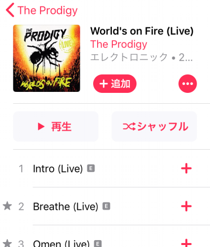 まず、再生中の曲のアルバムのページや