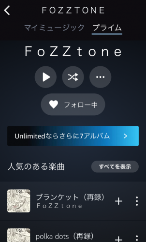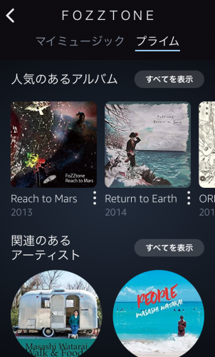 (一部の曲が聴ける「Prime Music」の状態)