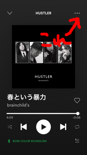 今聴いている曲の画面でここをタップ。