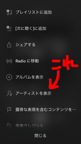 ここの「アーティストを表示」をタップすると・・・